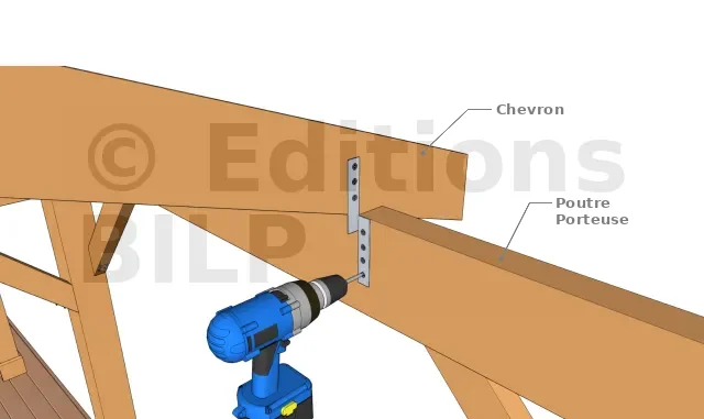 Il existe au moins trois techniques de fixation des chevrons sur son support :