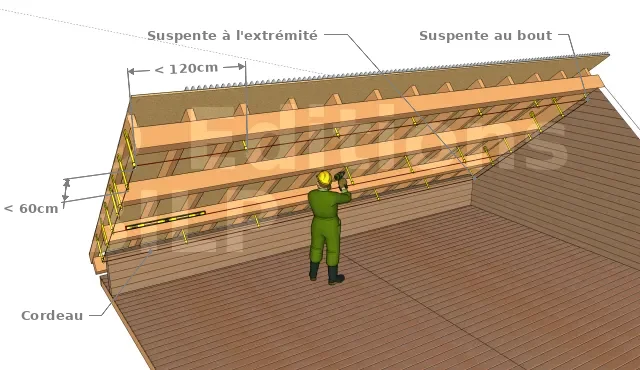 Leur espacement doit être en fonction de la structure de votre charpente mais il est important de savoir que l’espacement maximal est de 60 cm dans le sens vertical tandis que dans le sens horizontal, elle est de 120 cm.