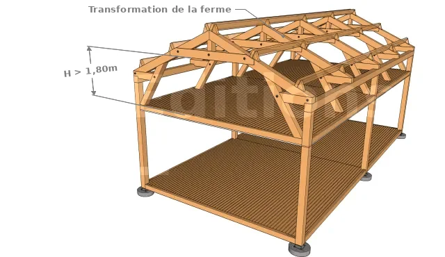 - La transformation des lieux (renforcement de la charpente, vérification et abaissement du plancher, etc.)
