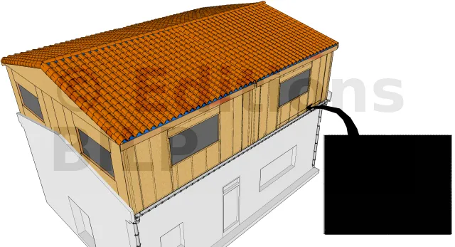 On y a recours quand la surélévation va de mur en mur. Le lamellé collé est positionné dans l’épaisseur de la structure en ossature bois. Il a pour avantage de jumeler 3 ou 4 poutr’espaces sous un pignon engendrant des moindres coûts. Cependant, il nécessite un engin de levage conséquent et il faudra également prévoir un calage s’il y a un passage de canalisation.