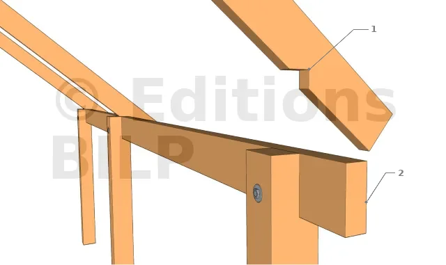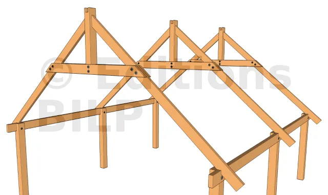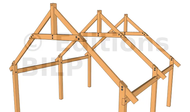 Les arbalétriers sont fixés sur les pannes avec des équerres, pattes de solivage, simple tirefonnage pour charge importante ; ou encore par simple vissage pour charge moins importante. Voir ces méthodes sur les techniques de fixations des chevrons.