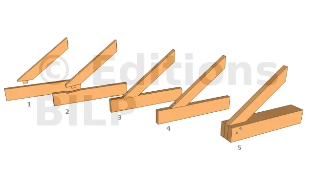 - 1 : Commencer par assembler le tenon de la contrefiche au poinçon,