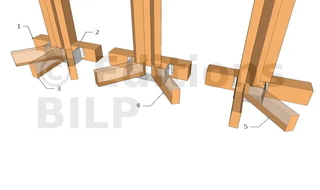 - 3 : Une demi-ferme droite et deux demi-fermes inclinées