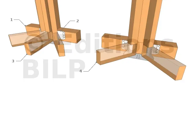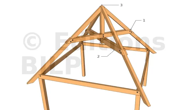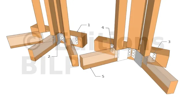 Dans une toiture à croupes, il est souvent utile de faire appel à la technique de demi-ferme. Elle est généralement fixée à une ferme porteuse. Ci-après quelques techniques pour les assemblages de ces éléments, ainsi que l’assemblage de deux fermes pour toiture en pavillon.