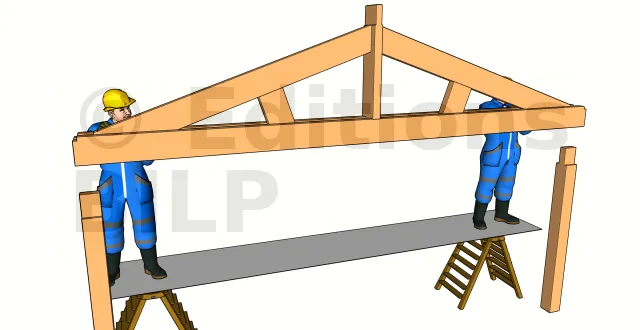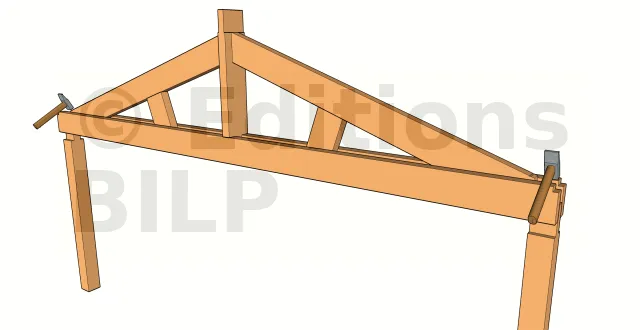 Cette technique est utilisée pour fixer l’entrait moisé sur les poteaux. Si l’assemblage de la ferme se fait pièce par pièce, la technique de pose pour panne moisée convient pour fixer l’entrait moisé sur les poteaux. Vous aurez ensuite à fixer une par une chaque pièce (poinçon, contrefiches et arbalétriers).