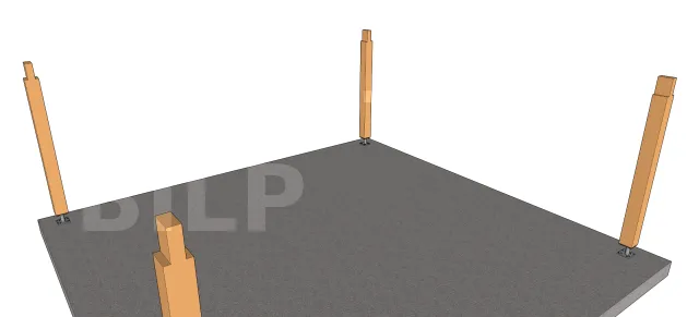 Technique adaptée pour une ferme avec un entrait simple de faible envergure. La technique consiste à fixer l’entrait au-dessus des poteaux avec des équerres par le dessous. Cette méthode n’est pas très esthétique car elle laisse paraître les accessoires de fixation. Elle ne convient pas non plus aux ouvrages de grande taille.