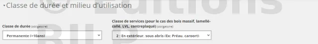 La construction est localisée à Isère à une altitude de 300m et elles seront en extérieur et sous abris (classe de service = 2).