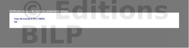 La vérification se fait avec l’outil Vérification à la compression oblique. Comme pour tous les autres éléments de la ferme, c’est le taux de travail qui sera à déterminer.