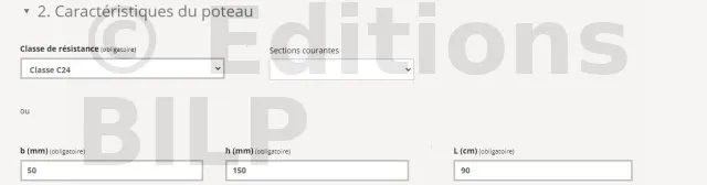 - Le bois utilisé est un bois résineux de classe C24 avec une section 50mm(b) x 150mm(h) et une longueur (L) de 90cm.