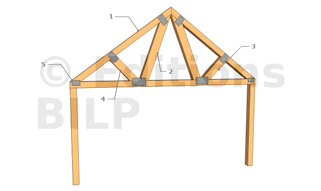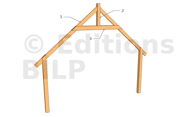 La ferme sur blochet est une ferme identique à la ferme à entrait retroussé à la différence que dans une ferme sur blochet, il n’y a aucune pression exercée sur les murs par les pieds des arbalétriers. La portée d’une ferme sur blochet doit être inférieure à 12 m et ce type de ferme est utilisé pour créer des combles aménagés.