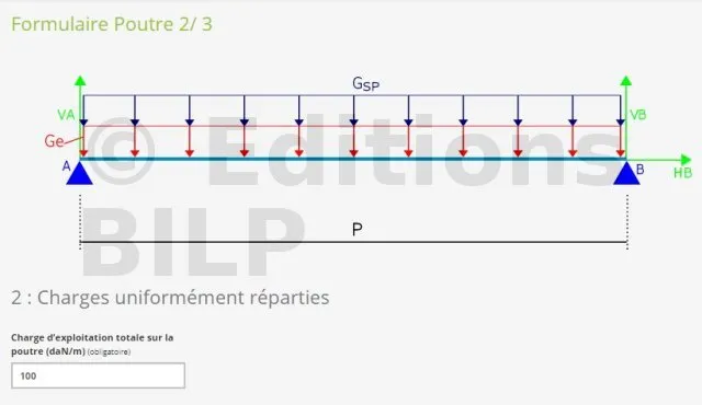 Pour le calcul des pannes, nous avons l’outil de calcul vérifier une poutre. Cet outil est aussi dépendant de l’outil "Calcul de la charge sur la toiture". Ce dernier nous donne deux résultats bien distincts dont la charge de structure et la surcharge climatique, que nous utiliserons pour compléter les cases "charge permanente sur la poutre daN/m" et la "charge d’exploitation totale sur la poutre (daN/m)". N’oublier pas que les unités sont en "daN/m" alors, il faut multiplier les résultats obtenus par l’outil de calcul de la charge sur la toiture par les largeurs d’applications.