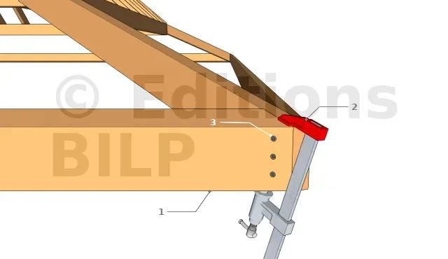 - 2. Utiliser un serre-joint pour éviter que le chevron d’arêtier ne bouge pendant la fixation