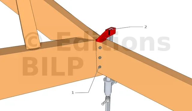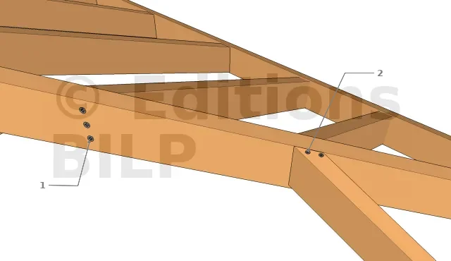 - 1. Fixer la tête du chevron d’arêtier par des clous torsadés à la panne sablière
