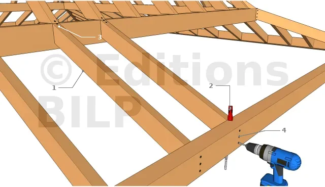 - 3. Fixer le coyau à la panne sablière par vissage par le dessus