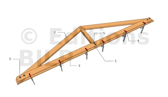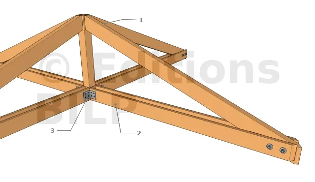 - 3 : Fixer les faux entraits secondaires aux faux entraits principaux par des équerres métalliques qui sont vissées ou clouées aux faux entraits