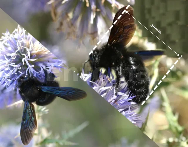 L’abeille charpentière ou communément appelée bourdon noir est, avec le frelon, l’un des plus grands hyménoptères d’Europe (2,5 à 3 cm de long). Les adultes, massifs, mesurent jusqu’à trois centimètres et jusqu’à cinq centimètres d’envergure. Le corps, entièrement noir, avec des reflets bleus métalliques, est couvert de poils. Les ailes membraneuses sont translucides mais foncées, leur couleur allant du brun cramoisi au violet. La grande taille, la couleur sombre, les reflets métalliques et le puissant vrombissement peuvent faire confondre cette abeille avec un coléoptère.