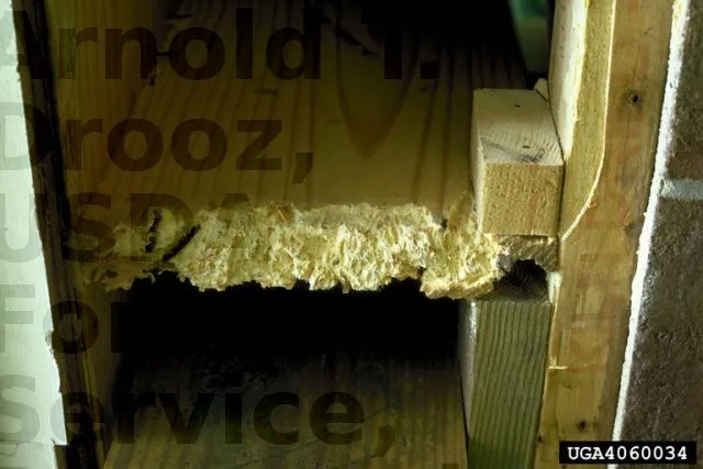 Mais d’autres insectes pondent dans le bois œuvré, sain et sec, dont l’humidité se situe entre 7 et 18%. Les générations peuvent se succéder jusqu’à destruction totale de la pièce de bois.