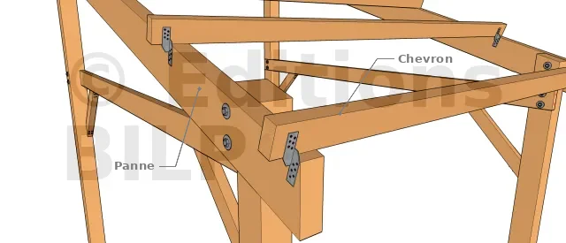 Elle est assez similaire à la deuxième technique car elle est dédiée aux assemblages de bois en perpendiculaire. Pour avoir une bonne emprise, et afin que les pièces de bois restent totalement immobiles, il est préférable de l’utiliser par paire, un sur chaque flanc du chevron.