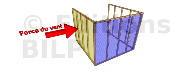 Pour ce faire, la force de cisaillement est obtenue grâce au calcul de la force du vent qui s’abat sur le mur perpendiculaire à celui que l’on prend en compte.