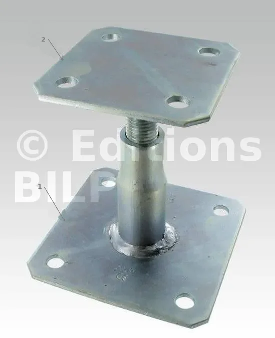 - pied de poteau à deux platines : fixe ou réglable