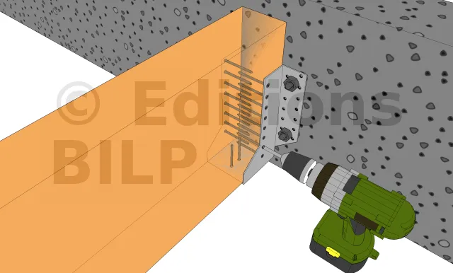 Fixation d'un sabot sur une poutre en bois. Fixation d'un sabot dans du béton