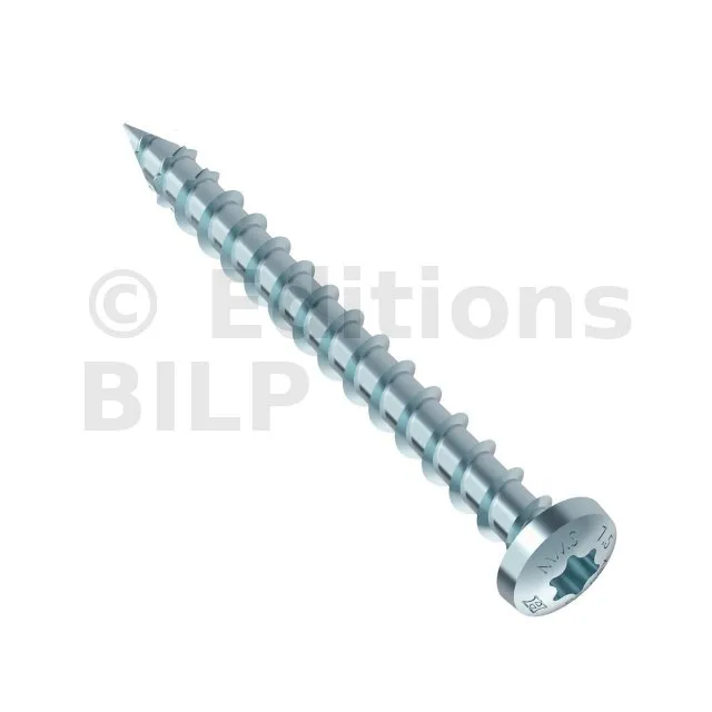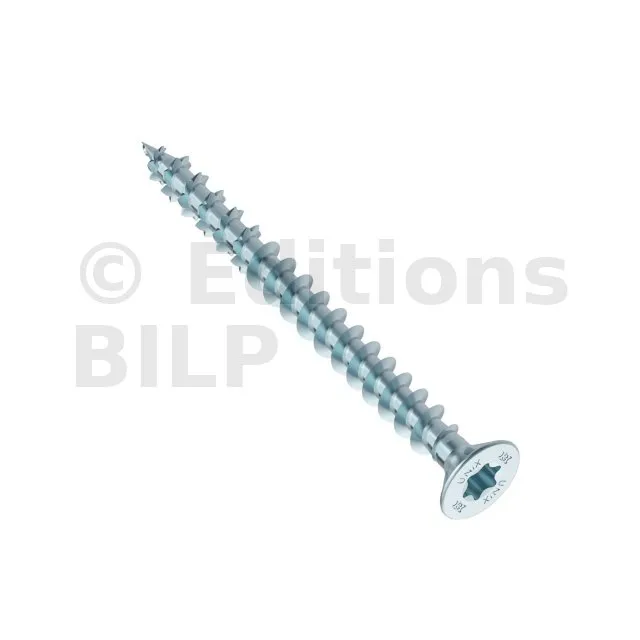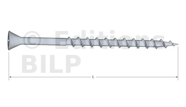 Comme défini dans l’introduction, une vis à bois comprend une tige cannelée pointue de forme cylindrique dont la tête permet de l’enfoncer dans le bois par un mouvement rotatif.