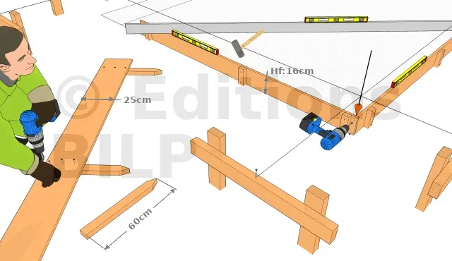 La partie la plus technique est la réalisation du coffrage avec des planches. Le résultat final dépend spécialement du soin que vous porterez à sa réalisation.