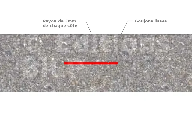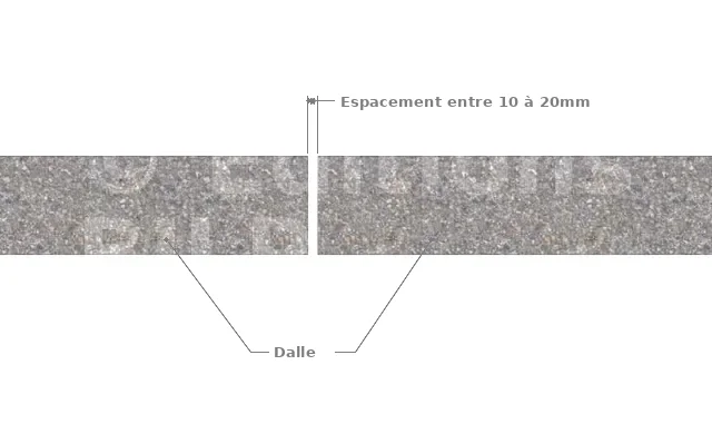 La technique consiste à fixer sur chaque face de la dalle qu’on mettra bout à bout, une matière qui ne peut se détériorer mais qu’on peut très bien comprimer, le caoutchouc, le silicone ou un profilé métallique (aluminium, acier) répondent bien à ces caractéristiques, son épaisseur doit être au moins égale à la dilatation maximale qu’elle est supposée traiter, soit de l’ordre de 10 à 20mm.
