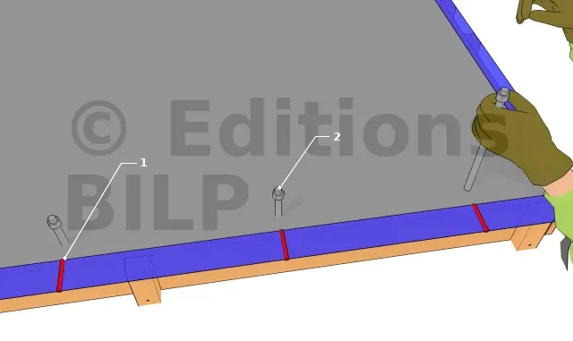 Au préalable et avant le coulage du béton, on aura repéré l’emplacement des ancres, en donnant un coup de feutre indélébile sur le polyane. Une astuce consiste à repérer en donner un coup de ciseau sur le polyane. Ainsi, le marquage ne peut pas disparaître dans les étapes précédentes qui sont assez salissantes.