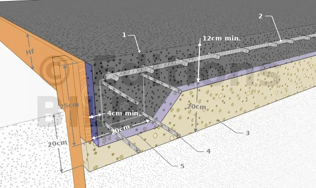 Il est primordiale de connaitre que les bords de la dalle de béton dépasse d’au moins 5 cm les pieds de poteaux pour éviter que ces bords se cassent.