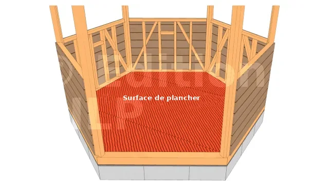 Dans le cas des structures en bois créant une surface de plancher (abris, cabanes, serres et autres petits bâtis clos et couverts) ; en effet, les structures ouvertes (pergola, gloriette ou kiosque non-fermée) ne créent pas de surface de plancher ; pour connaître la surface de plancher, on peut déduire :