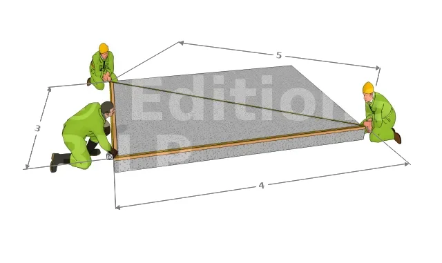 La méthode 3-4-5 utilise la bonne vieille formule de Pythagore du triangle rectangle : "le carré de la longueur de l’hypoténuse est égal à la somme des carrés des longueurs des deux autres côtés". Le côté de valeur 5 unités est ici l’hypoténuse et les valeurs 3 et 4 unités sont les côtés, le résultat donne 25 = 9 + 16, le compte est bon.
