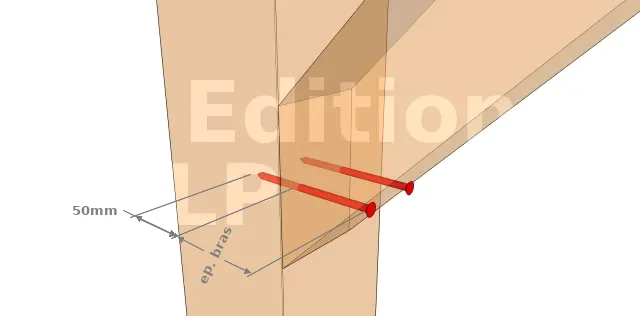 Longueur de la pointe = épaisseur du bras de contreventement + 50 mm d’enfoncement au minimum