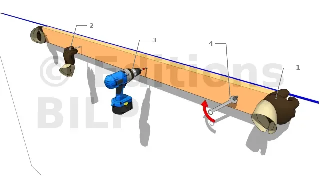- 3. Perçage au travers de la muralière, et au travers du béton en une seule opération avec un foret béton (le foret béton arrive à percer le bois en mode percussion)
