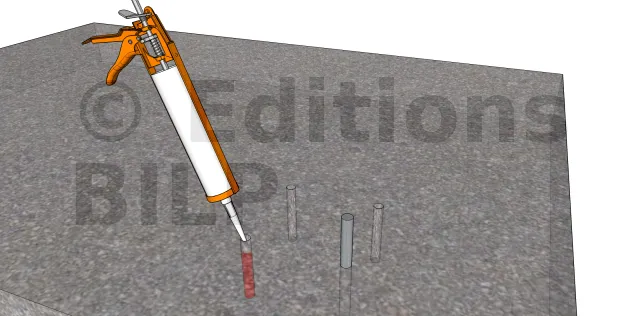 - Injecter la résine, au pistolet d’injection, au 3/4 du trou.