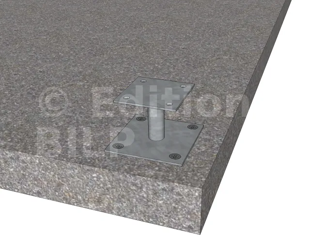 - puis fixer le pied sur la dalle avec les vis à l’aide d’une tournevis ou d’une visseuse.