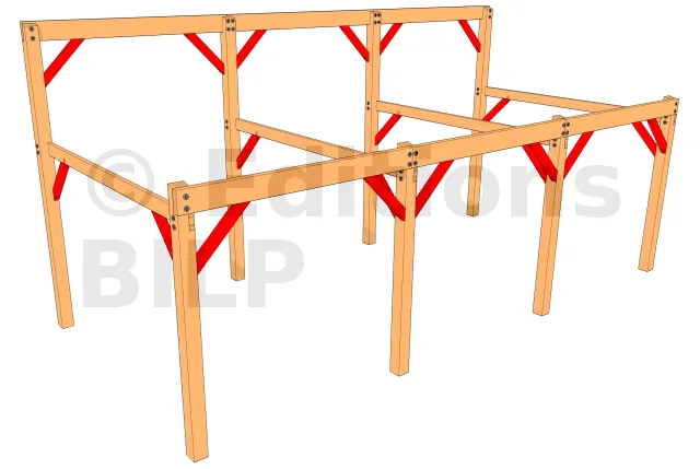 Les bras de contreventement de ce carport évitent le basculement de la structure dans les deux principales directions (en long et en profondeur).[...]