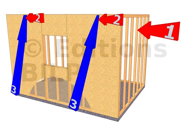 Il faut que la somme des résistances de tous les panneaux sur une face extérieure du bâtiment soit supérieure à l’effort de vent maximal de la région pour que le contreventement de l’ouvrage par voile travaillant soit assuré.