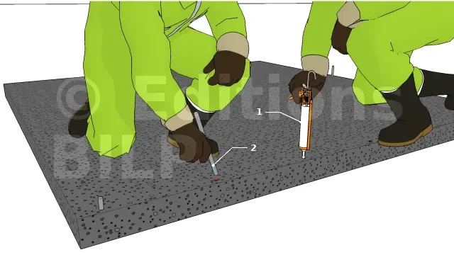 - 1 : Injecter la résine dans l’orifice. Remplissez sur la moitié de la profondeur.