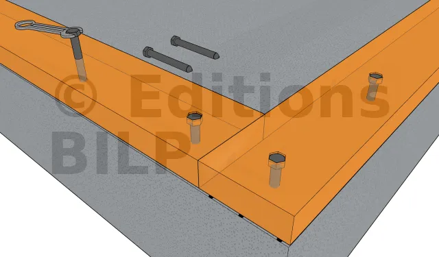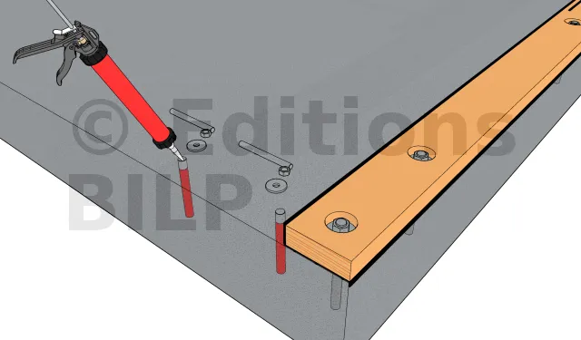 La fixation peut également se faire par scellement chimique des tiges filetées que l’on serre par la suite avec des écrous et des rondelles.