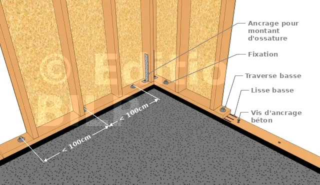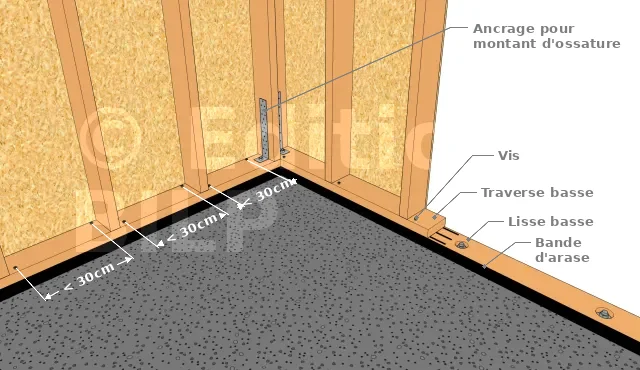 - **Fixation des pans de mur sur la lisse basse