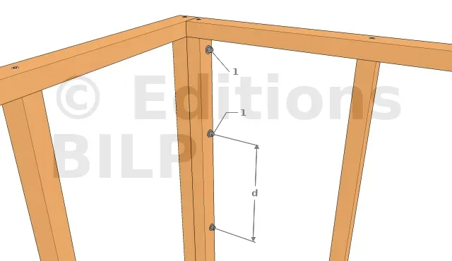 L’espacement entre les montants doit être scrupuleusement respecté autant au niveau de la lisse basse que de la lisse haute (traverse supérieure). Cette traverse supérieure sera doublée dès lors que les montants seront fixés afin de constituer la sablière.