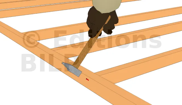 Lorsque les marquages sont effectués, il est temps de fixer les montants. Le clouage est la méthode traditionnelle utilisée par les charpentiers. Il est soit manuel, soit réalisé à l’aide d’un cloueur pneumatique. Mais pour l’amateur, les vis sont plus faciles à mettre en œuvre et l’assemblage est aussi plus solide.