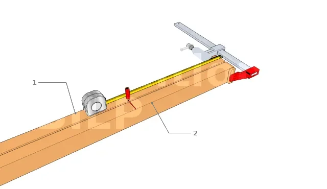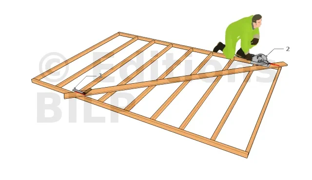 Pour assurer un marquage précis, placer la lisse basse et la lisse de la sablière côte à côte, en alignant parfaitement le bout. Si nécessaire, il est préférable de couper l’autre bout des planches afin que les longueurs soient identiques.