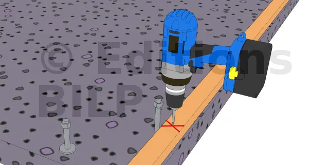 Il suffit alors de marquer le point de fixation des montants en respectant l’écartement, à savoir entre 40 et 60 cm. Il faut savoir que les marques doivent être alignées au centre de la base de chaque montant.