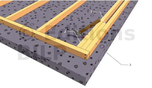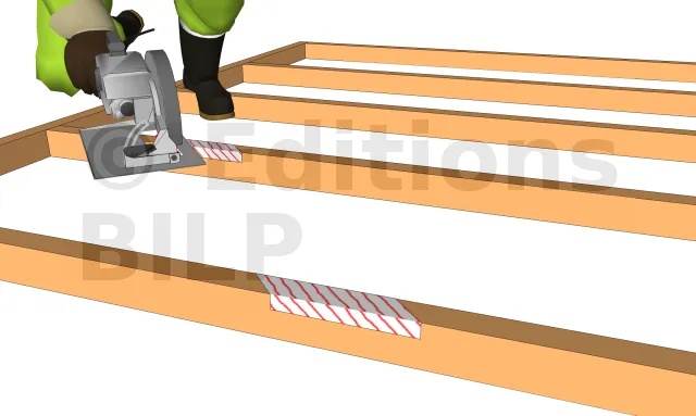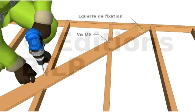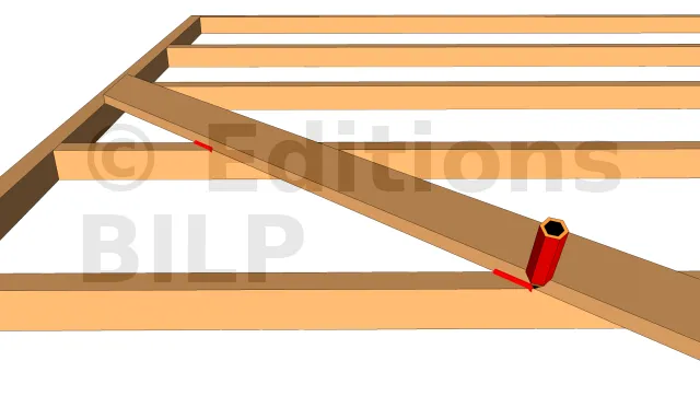 Ce qui suit s’applique à la mise en place des écharpes de contreventement incrustées qui, pour des raisons pratiques, doivent être fixées avant l’élévation de l’ossature de mur.