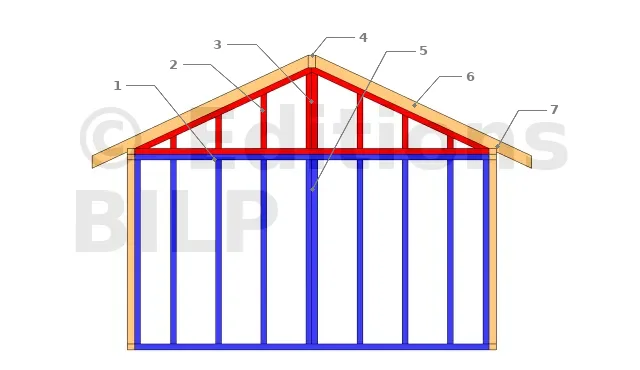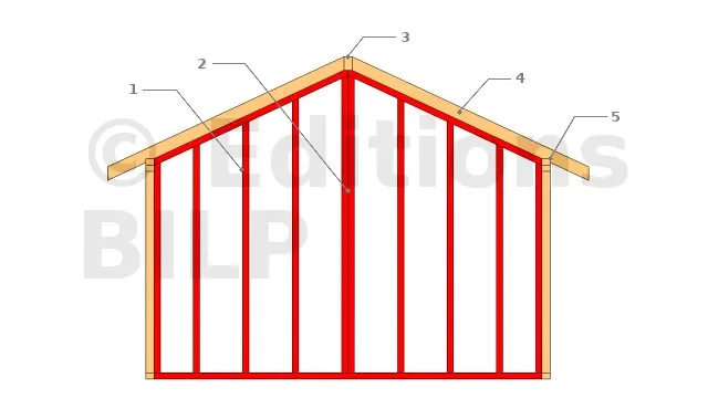 - 4 : les premiers chevrons reposent directement sur l’oblique du pignon.