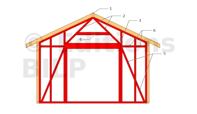 - 2 : Le montant central supporte la charge de la faîtière. Idéalement, ce montant fait la même largeur que la faîtière.