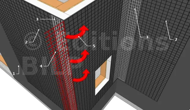 - 4 : Tasseau de bardage au droit du montant de l’ossature