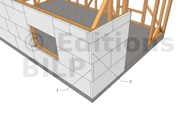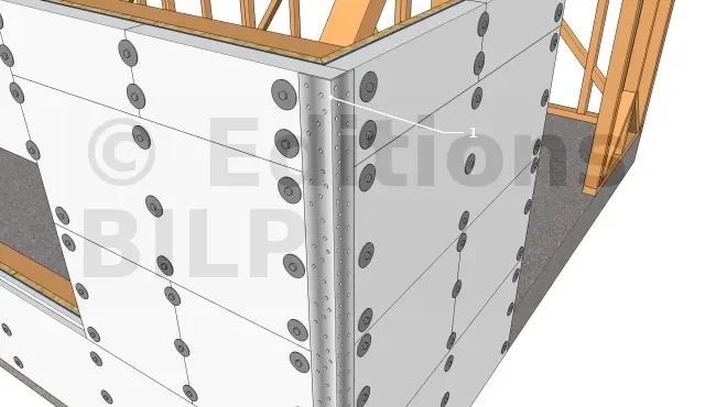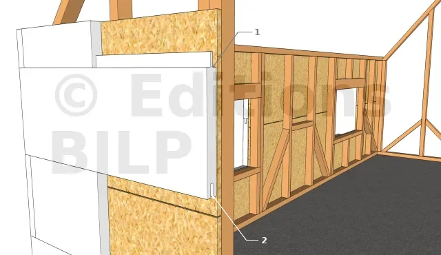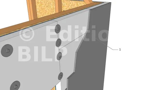 - Deux joints superposés doivent se décaler.Vue 3dAssemblage des panneaux de fibragglo (technique 1)
